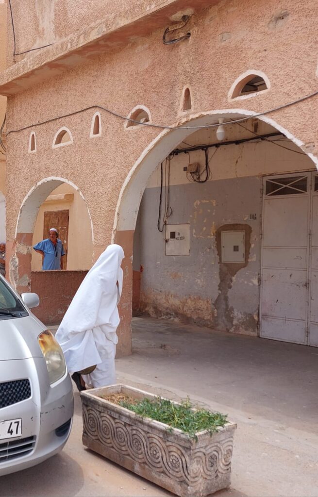 Le case color sabbia si dispongono in cerchi attorno alla moschea, i vicoli si arrampicano tra le colline come onde nel deserto, e le donne mozabite, avvolte nel loro tradizionale ahouli bianco, incarnano il silenzio e la grazia di una cultura millenaria.