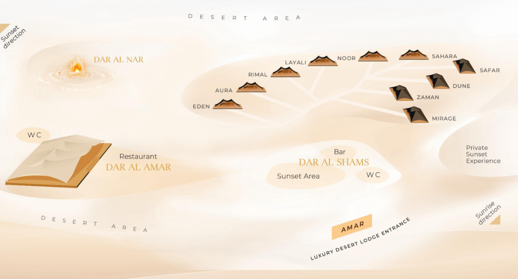 Il viaggio si arricchisce di un momento esclusivo: un pernottamento indimenticabile all’AMAR LUXURY DESERT ECOLODGE, tra le dune dorate, con attività al tramonto e cena gourmet sotto le stelle